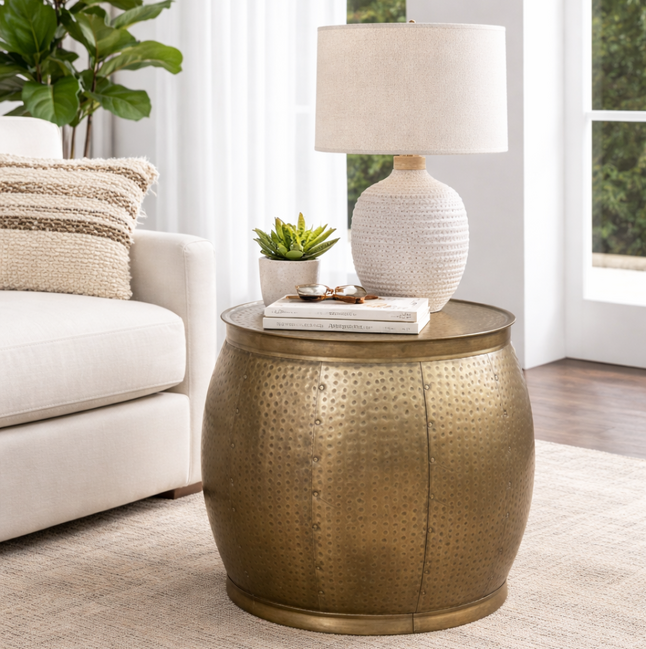 BRASS HAMMERED SIDE TABLE