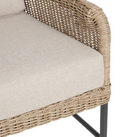 Crafted from recycled plastic, our Catalina woven wicker outdoor range has been designed to bring enduring comfort and beauty to your outdoor space. Woven around an elegant metal frame, the Club Chair with boxed seat cushion offers weather resistance to outdoor living using Olefin eco-friendly material that is resilient, colourfast, stain-resistant and durable. Other coordinating pieces are available. SEAT HEIGHT: 48H cm