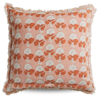 The Freshfields Collection celebrates summer garden florals in stunning hand-block patterns on beautiful linen. The Freshfields Sissi Cushion Cover boasts a large floral print with an eye-catching terracotta highlight on a rose linen base, matching fringe and matching reverse.