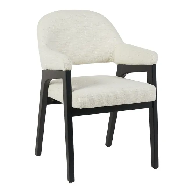 The Koen Dining Chair in Ivory or Brown blends timeless sophistication with everyday comfort. Upholstered in soft ivory fabric, it features a gently curved backrest and plush cushioned seat for relaxed dining. The open-back detail adds a modern, airy touch, while solid timber legs provide elegant contrast and stability. Combining craftsmanship with contemporary design, the Koen Chair is both stylish and durable—perfect for refined dining rooms or versatile living spaces seeking understated luxury and enduring comfort in every detail. Available in Ivory or Brown fabric