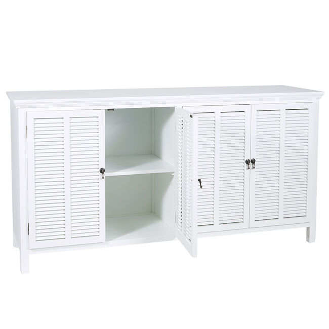The Louvre 4 Door Buffet in White is both versatile and practical and is made from poplar with a satin paint finish.