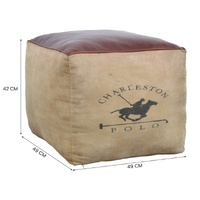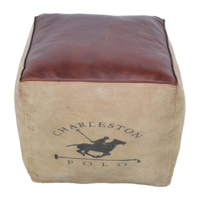Charleston Polo Square Ottoman Covered In Leather And Recycled Canvas, Upcycled From Old Indian Army Tents 48X48X42 Cm Look No Further Than Our Charleston Polo Square Ottoman. Vintage Prints Are Off Balanced With The Neutral Recycled Army Tent Canvas And Leather.45X50X50