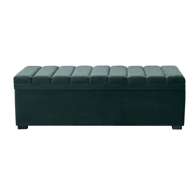 Upholstered in a delicious velvet, the Soho storage bench ottoman features a luxuriously panelled top which lifts to reveal ample storage - creating a furniture piece that is both beautiful and functional. Classic contemporary in design, the Soho storage bench ottoman is the perfect accent piece for an elegantly styled bedroom, entry or additional living room seating. A beautiful complement to any interior.. Available in Nude Velvet, Off White Linen & Olive Velvet
